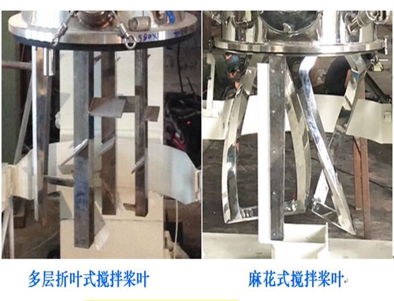 e) 攪拌系統:一個或兩個高速分散器,一把刮邊的刮刀,2~3根帶刮底攪拌槳葉。攪拌槳葉形式一般有:多層折葉式、麻花式、框式三種。
