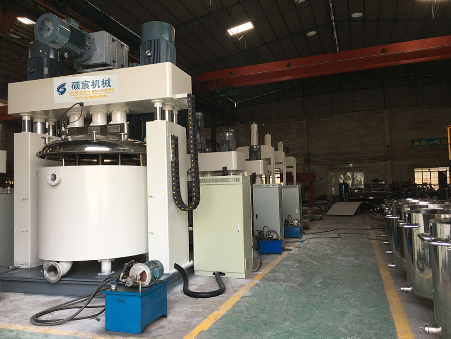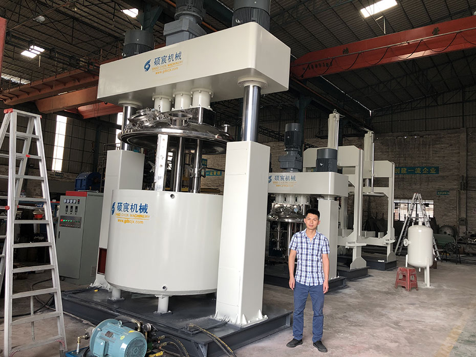 其中強力分散機(制膠機)是硅酮密封膠、玻璃膠、結(jié)構(gòu)膠的生產(chǎn)設(shè)備中的主要組成部分,也是硅酮膠、玻璃膠的整條生產(chǎn)線中為重要設(shè)備部分。強力分散機是一種快速攪拌機,有三個動力驅(qū)動的電動機,釜內(nèi)有三根不同形式、高低速結(jié)合的攪拌器;是一種應(yīng)用行業(yè)廣泛、密封性好、可抽真空、具有良好的脫泡效果、攪拌無死角、高低速結(jié)合、攪拌分散充分快速的混合攪拌設(shè)備。若想要了解更多的工況,您可以提出您所需要的處理量、設(shè)備形式、規(guī)格要求或您需要加工的物料的性質(zhì),根據(jù)您的情況碩宸的銷售工程師會提供讓您滿意的方案。